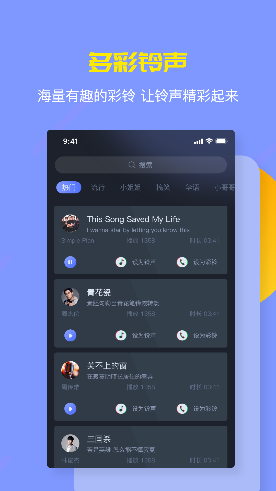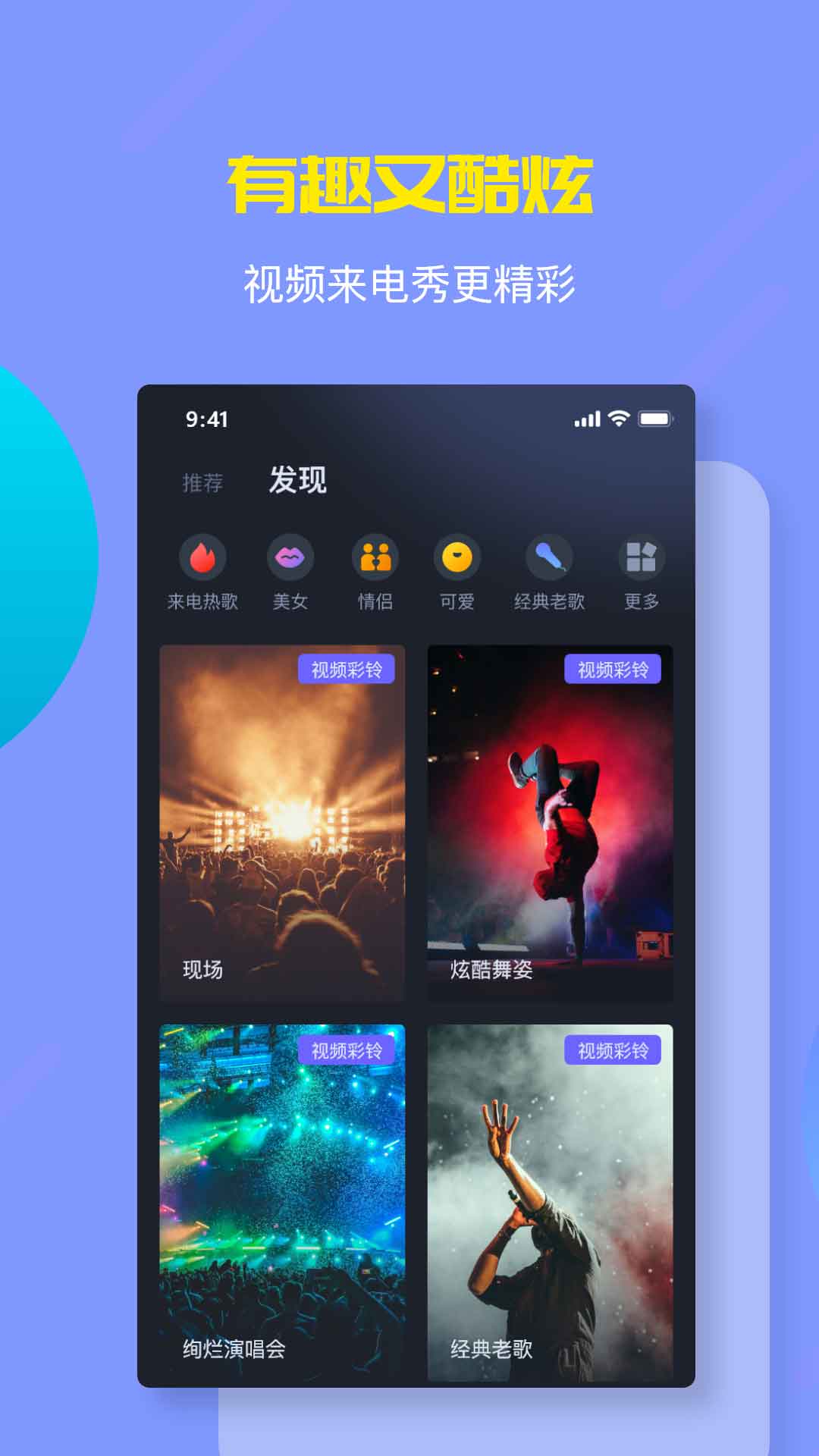 与众不同的来电秀赶紧来设置 每日更新】 紧跟潮流,全网热门素材每日更新。透明来电秀,本地来电秀一键设置 【来电秀】 海量来电主题应有尽有,抖音热歌、当前最流行、炫酷、卡通、影视、情侣、搞怪……种类齐全,绝对满足你的需求。还有更多:透明来电秀,本地视频来电秀等等 【铃声秀】